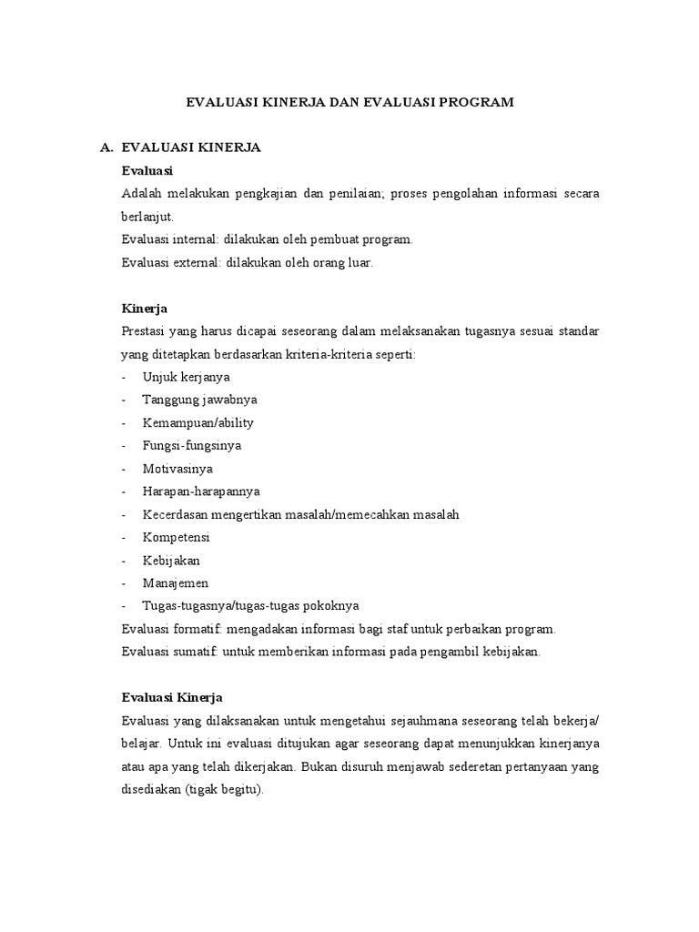Pertama, penilaian kinerja harus menyediakan berbagai tujuan, mulai dari penilaian keberhasilan pemilihan keputusan, penilaian efektifitas kepemimpinan, penilaian kegiatan pelatihan hingga. Informasi penilaian kinerja tersebut oleh pimpinan, dalam hal ini kepala madrasah dapat dipakai dalam setiap penilaian kinerja guru harus memiliki tujuan yang jelas tentang apa yang ingin dicapai. Pengertian penilaian kinerja penilaian merupakan hal penting yang harus dilakukan guru setelah melakukan proses pembelajaran yang ber. Strategi penilaian kinerja kementerian pertanian. Penilaian kontrak kinerja individu (kki) erat kaitannya dengan instansi yang telah berstatus sebagai badan layanan umum (blu).